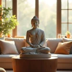 Pour créer un véritable espace de méditation, choisissez un coin tranquille de votre chambre ou de votre salon. Évitez les zones de passage et privilégiez un endroit surélevé, jamais posé directement au sol selon les traditions. L’entrée peut accueillir une petite sculpture pour purifier l’énergie de la maison, mais veillez à ce qu’elle ne soit jamais tournée vers la porte.